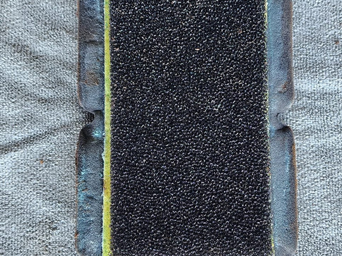 3. Funnelweb No.1 at approx 3,000kms, with cut away view after it was returned for inspection. Dirt and dust affecting only the 1st layer, and still plenty of the pyramids showing oil and relatively clean surfaces.